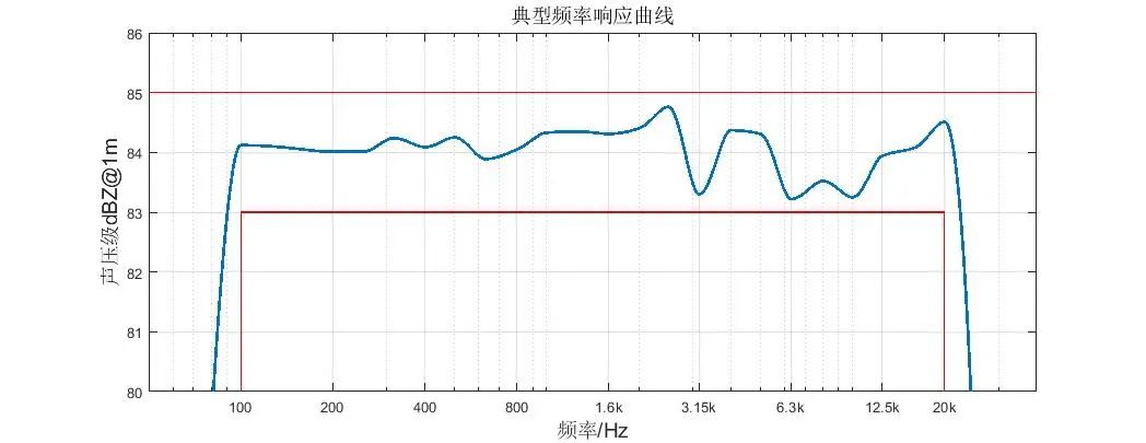 典型頻響曲線和典型諧波失真曲線如下所示: