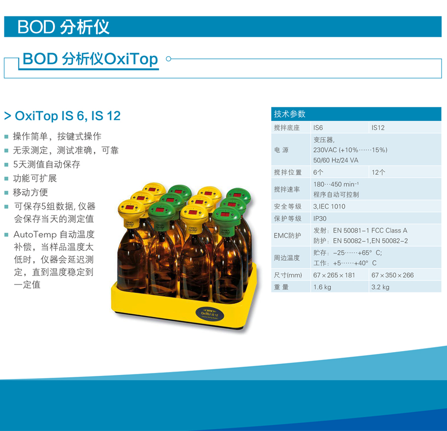 德國WTW OxiTop® IS 6/OxiTop® IS 12實驗室BOD分析儀簡介