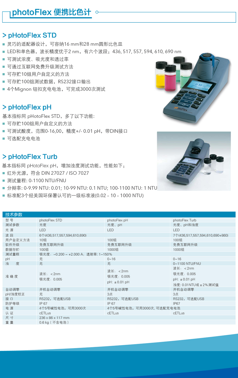 德國WTW pHotoFlex(STD/PH/Turb)便攜式光度計特點: