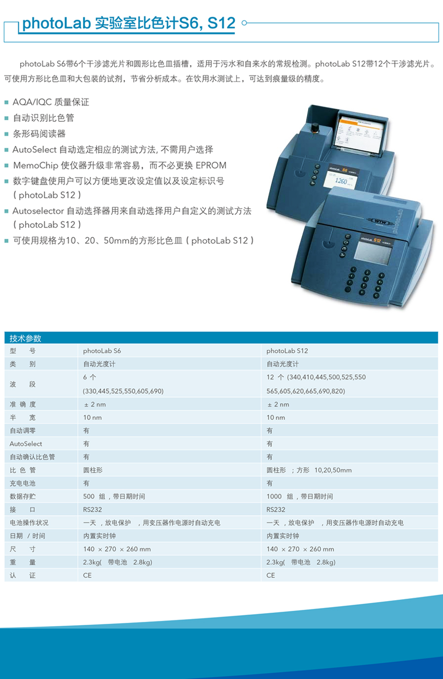 德國WTW photoLab S6/12 濾色光度計產品簡介
