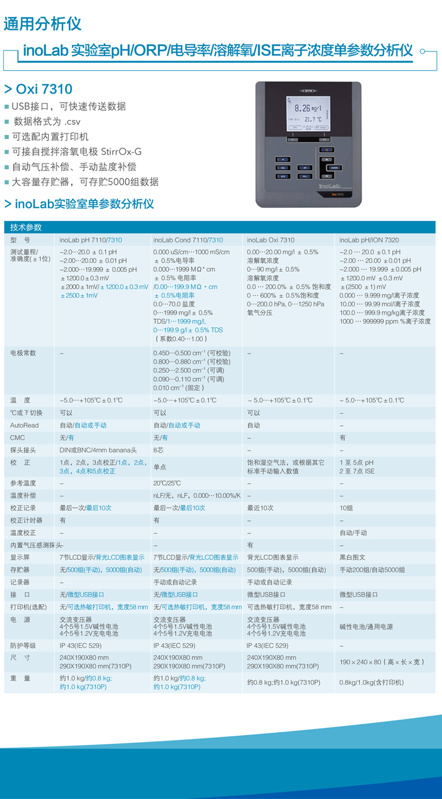 inoLab® Oxi 7310 實驗室專業溶解氧測定儀,僅主機,含電源適配器,支架和操作手冊,軟件和USB電纜 |
