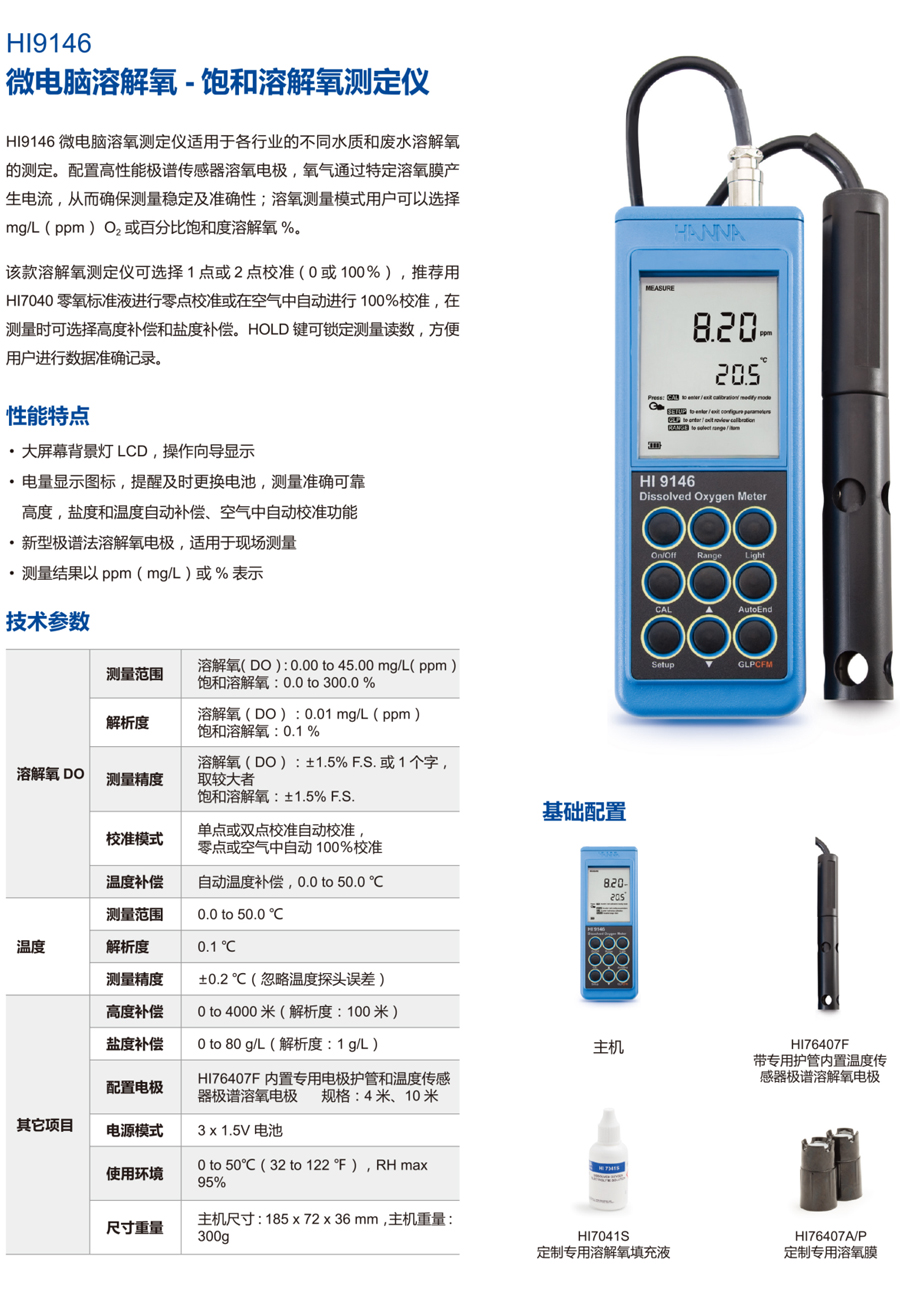 產品名稱:哈納 HI9146 便攜DO-溶解氧測定儀