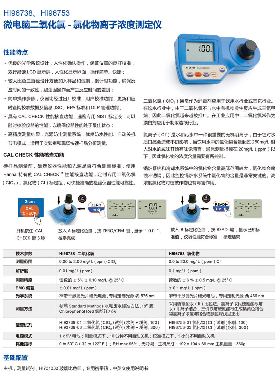 產品名稱:哈納 HI96738 二氧化氯濃度測定儀