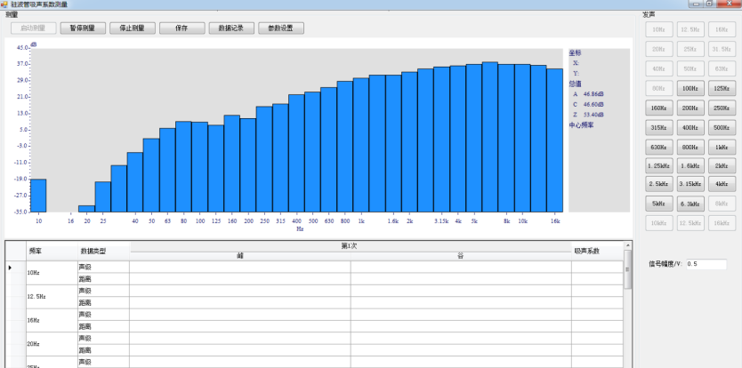 產生駐波,配合駐波管測量軟件測量材料吸聲系數 |
