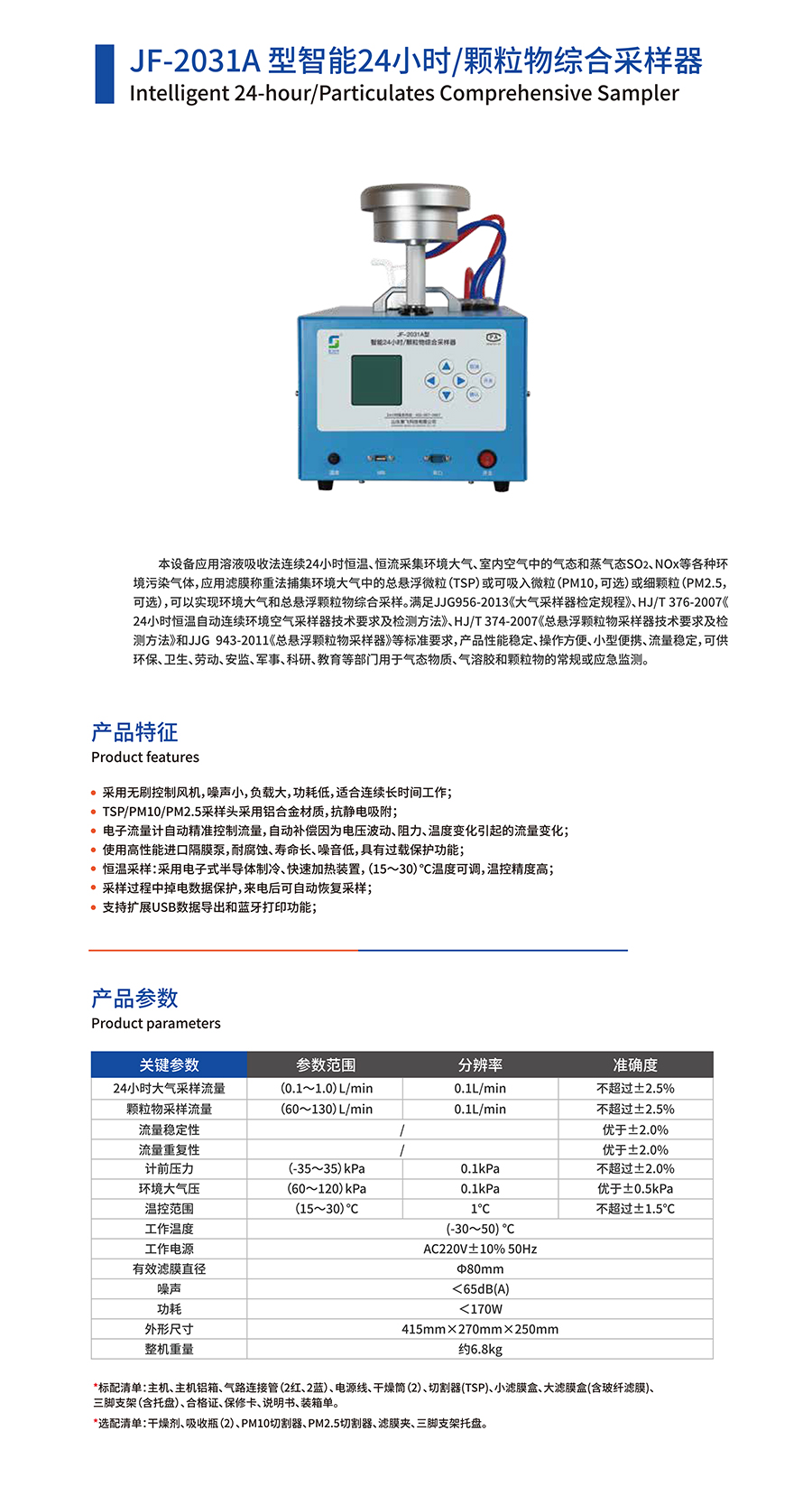 產(chǎn)品名稱:JF-2031A型智能24小時/顆粒物綜合采樣器
