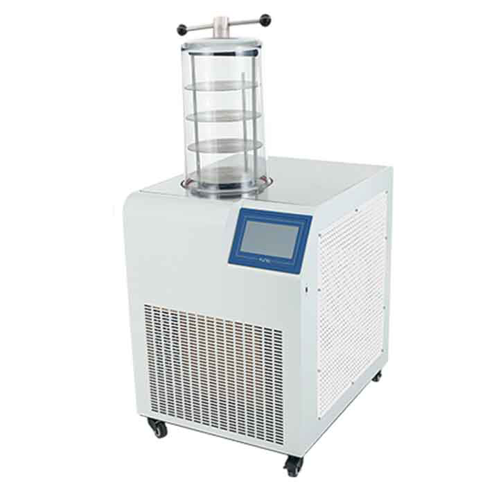 冷凍干燥機(jī)主要原理利用升華使物料脫水的一種低溫干燥設(shè)備,將含水物料冷凍成固體,在低溫低壓條件下利用水的升華性能,使物料低溫脫水而達(dá)到干燥的新型干燥手段,適用于生物研究、醫(yī)學(xué)制藥、化工、食品加工、大專院校等領(lǐng)域進(jìn)行冷凍干燥、菌種保存等領(lǐng)域。臺(tái)式冷凍干燥機(jī)系列分為普通型、手動(dòng)壓蓋型、多歧管型、壓蓋多歧管型等四種機(jī)型,主要原理利用升華使物料脫水的一種低溫干燥設(shè)備,將含水物料冷凍成固體,在低溫低壓條件下利用水的升華性能,使物料低溫脫水而達(dá)到干燥的新型干燥手段,適用于生物研究、醫(yī)學(xué)制藥、化工、食品加工、大專院校等領(lǐng)域進(jìn)行冷凍干燥、菌種保存等領(lǐng)域。