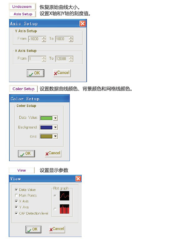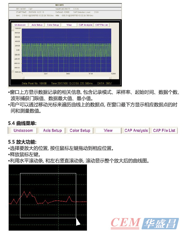 波形記錄:記錄超出設(shè)定電壓(電流)值的波形(764個(gè)數(shù)據(jù))